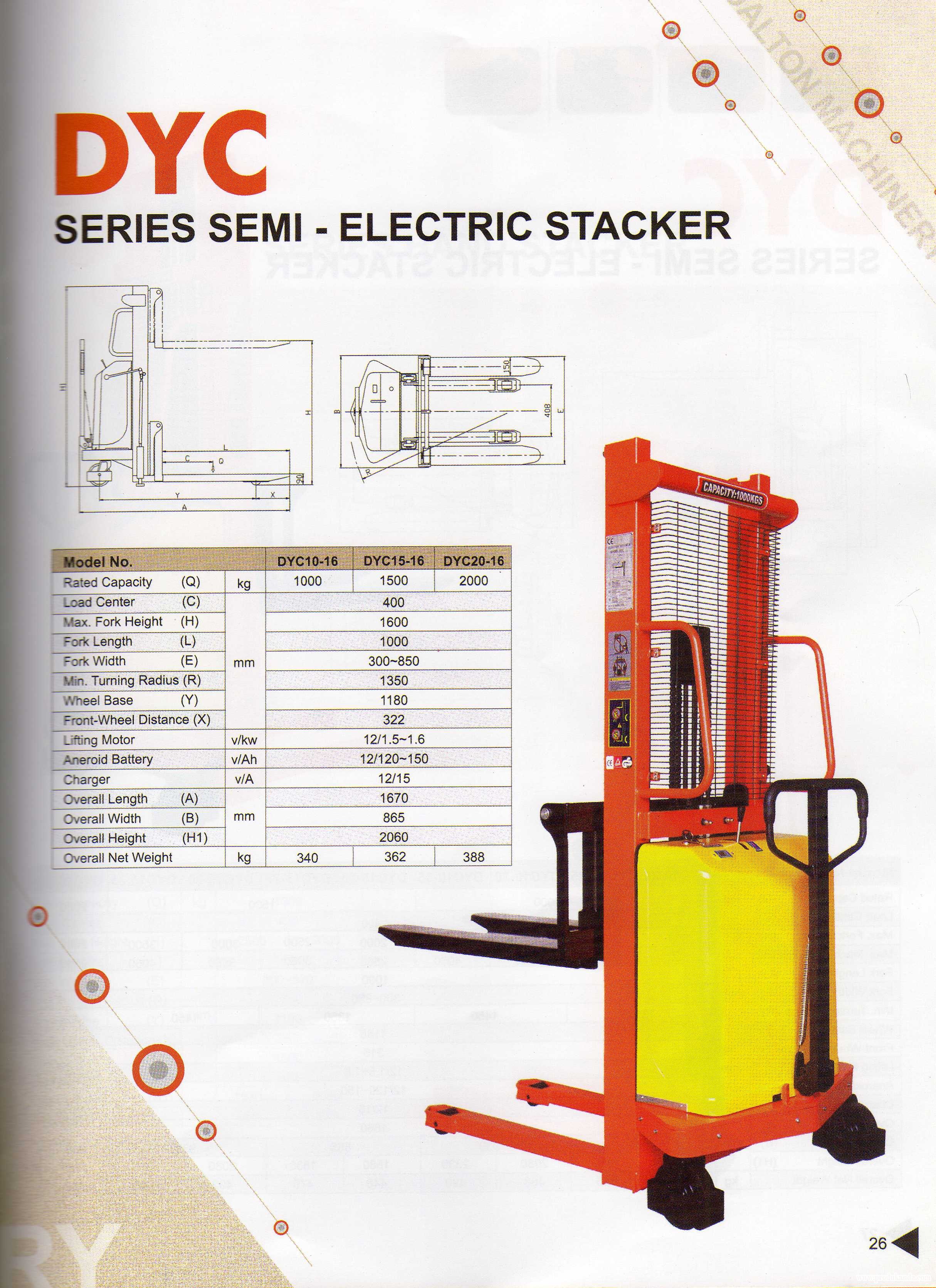 Anda membutuhkan stacker, kami sebagai importir menyediakan untuk kebutuhan industri maupun instansi. Stacker semi elektrik ini menggunakan batere untuk menaik turunkan hidroulisnya. Batere dapat di charge dan bertahan sampai 8-12 jam. Tersedia untuk berbagai macam kapasitas dan ketinggian yang di butuhkan.